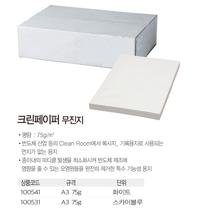 ● 반도체 산업 등의 clean room에서 복사지 기록용지로 사용되는 먼지가 없는 종이