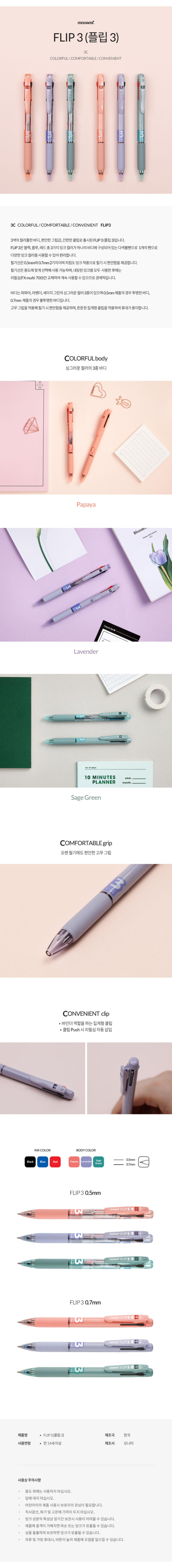 ■ 품명 및 모델명: 플립3 3색볼펜(0.5/papaya/1자루/모나미)