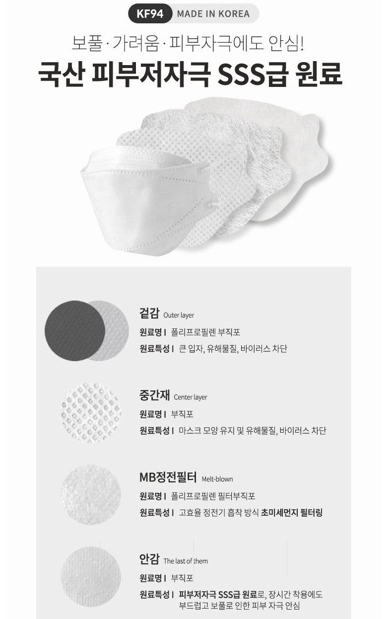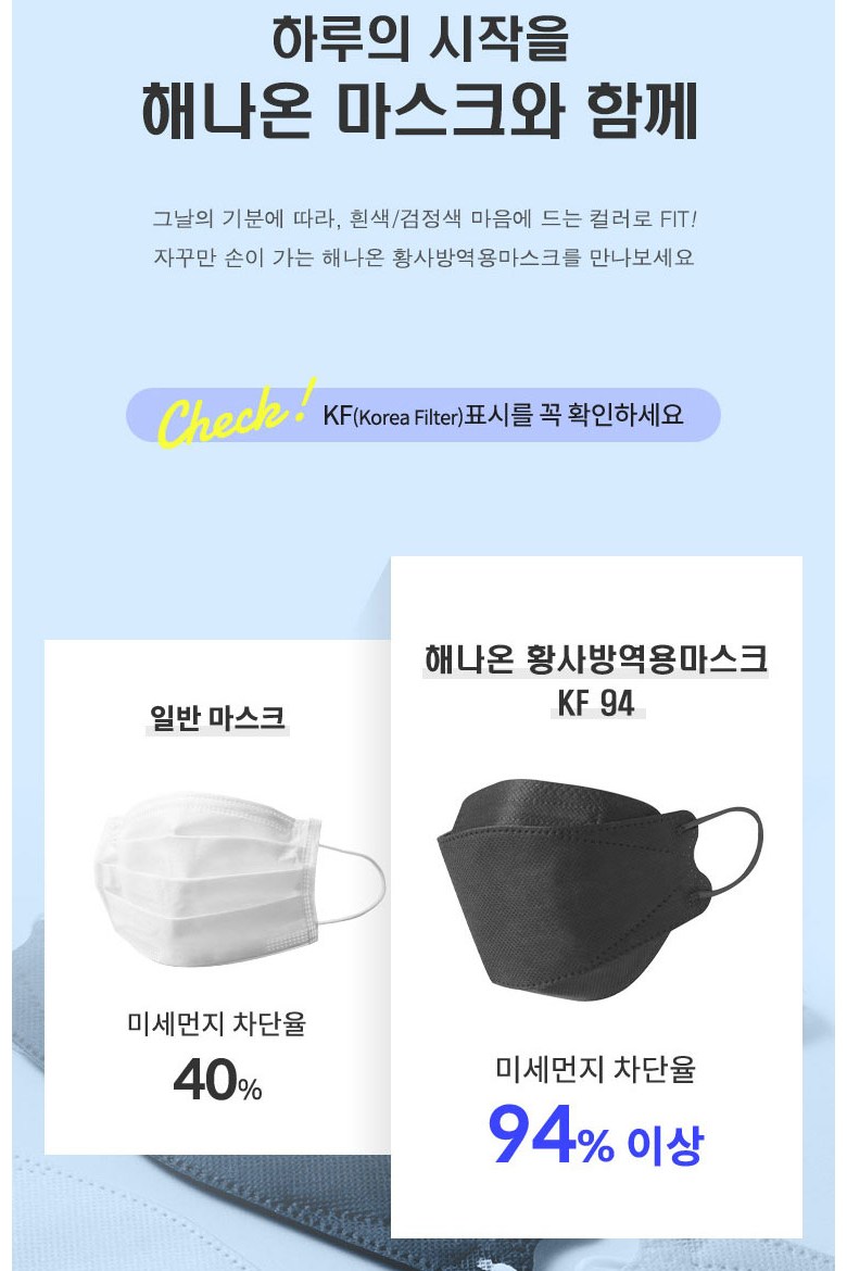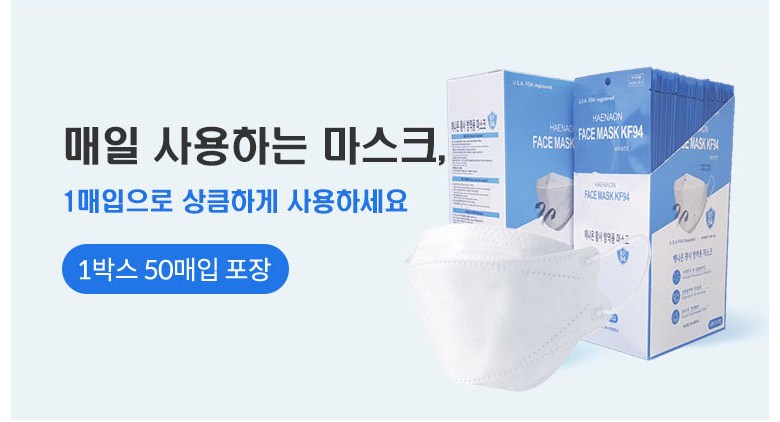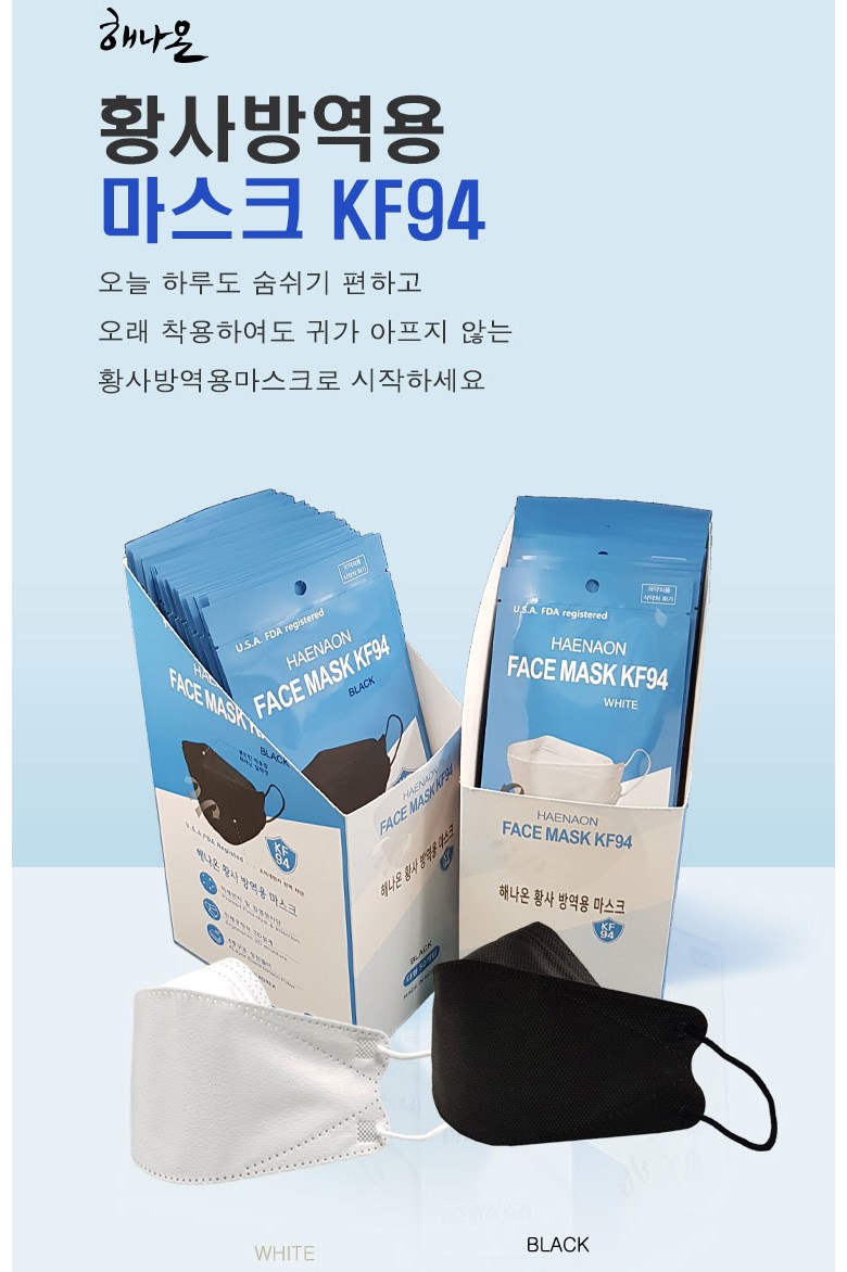 [업체별도배송]해나온 황사방역용 마스크(KF-94/대형/화이트/800개/박스)