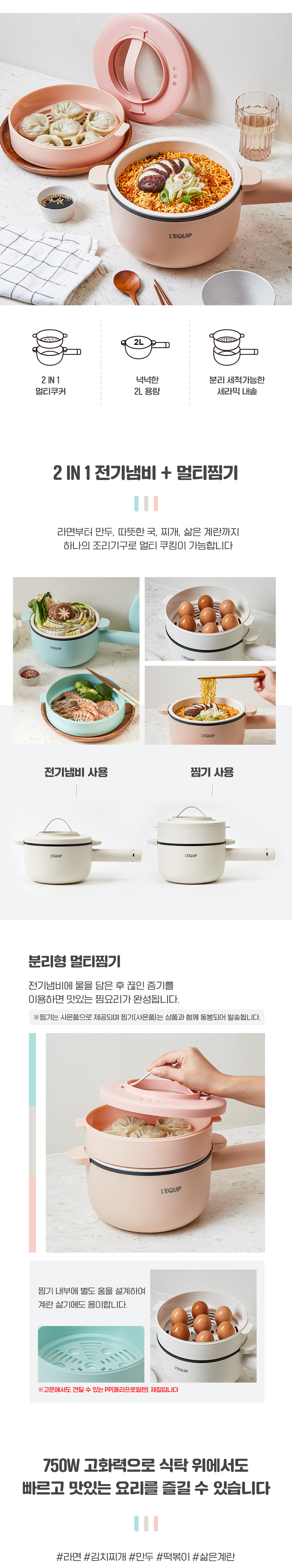 [업체별도배송]리큅 2in1 멀티쿠커 라면포트(LEP-P20/핑크/리큅)
