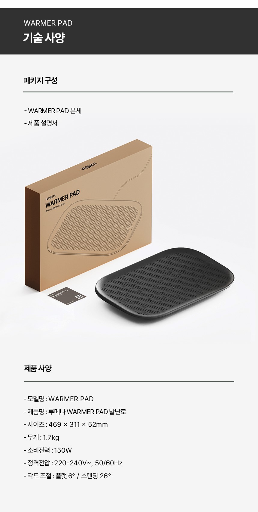 [업체별도배송]WARMER PAD 발난로(블랙/루메나)