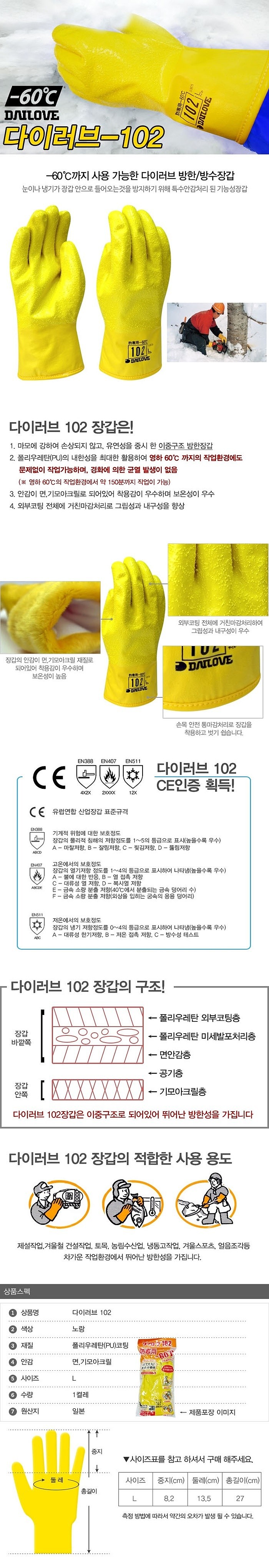 [업체별도배송]방한 PU 코팅 장갑 (102)(모델명:102/사이즈:L/색상:노랑/재질:면,BOA기모,아크릴사, PU 코팅/전장(mm):280/다이러브)
