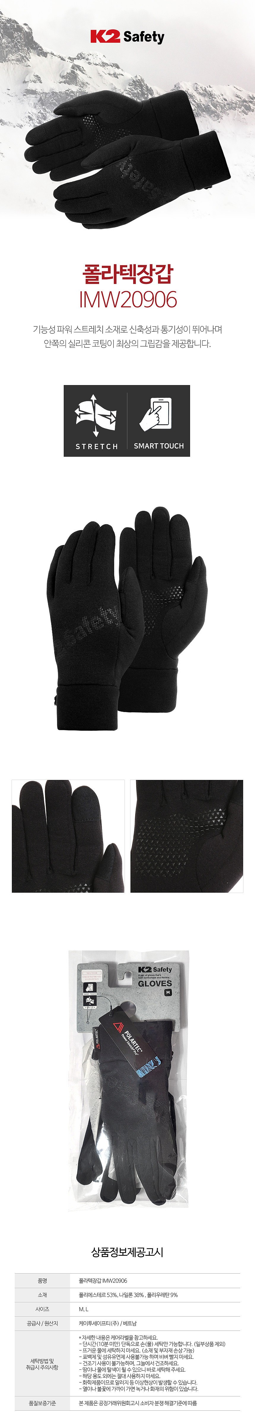 [업체별도배송]방한 장갑 (폴라텍 IMW20906)(모델명:IMW20906/사이즈:L/색상:검정/재질:폴리에스테르, 실리콘 코팅/전장(mm):-/케이투)
