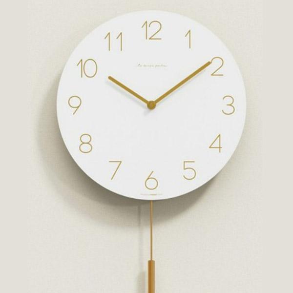 [업체별도배송]플랫 우드 진자 벽시계(화이트골드)