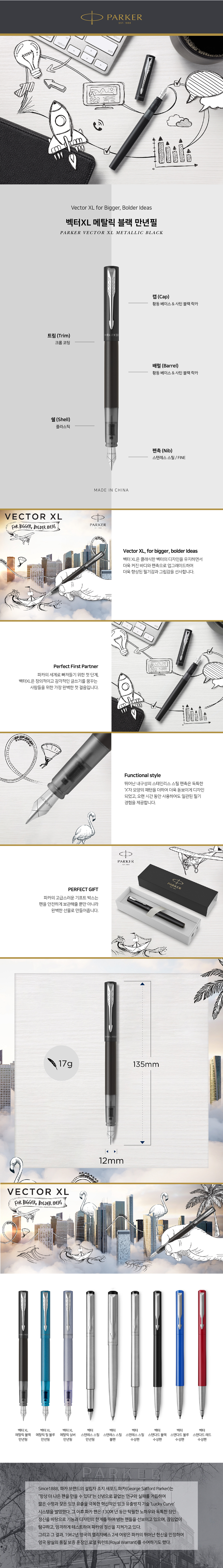 벡터 XL 만년필(메탈릭 블랙/F/PARKER)