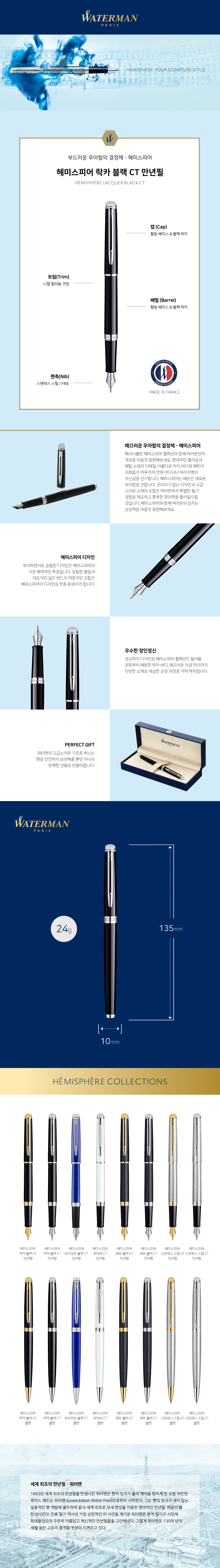 [업체별도배송]뉴 헤미스피어 만년필(락카 블랙/CT-F/WATERMAN)