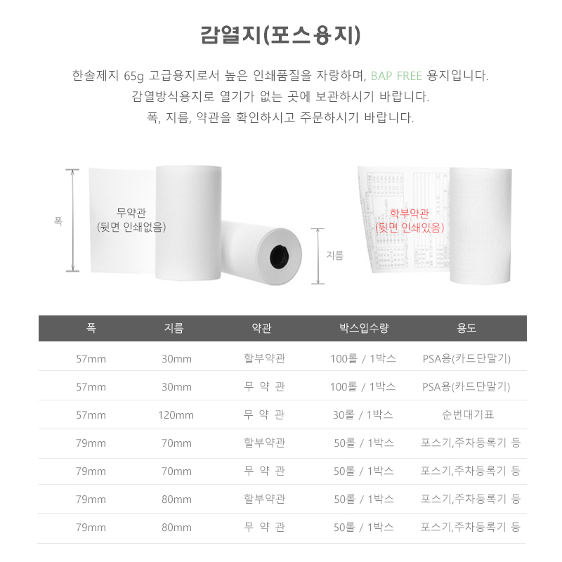 ■ 품명 및 모델명 : 감열지(BPA-FREE용지/무약관/PDA용/57*30/5롤)