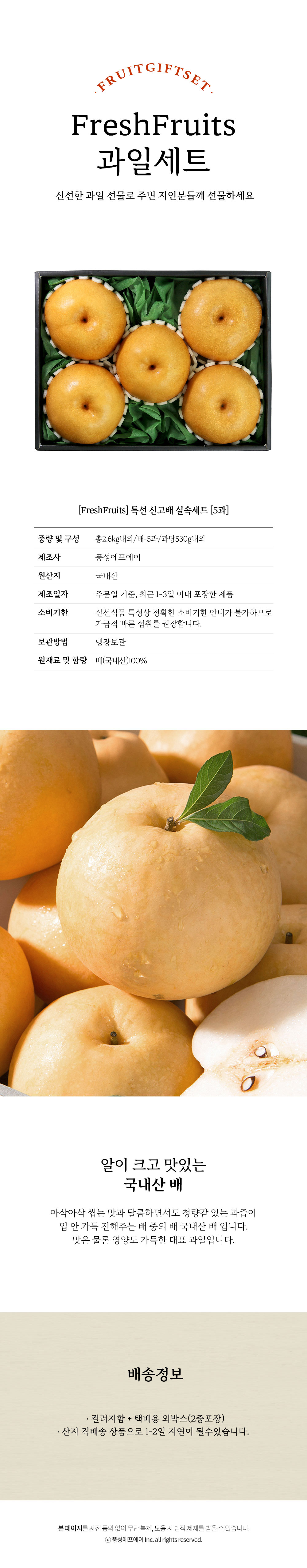 [업체별도배송] 대디스팜 FreshFruits 특선 신고배 실속세트 5과