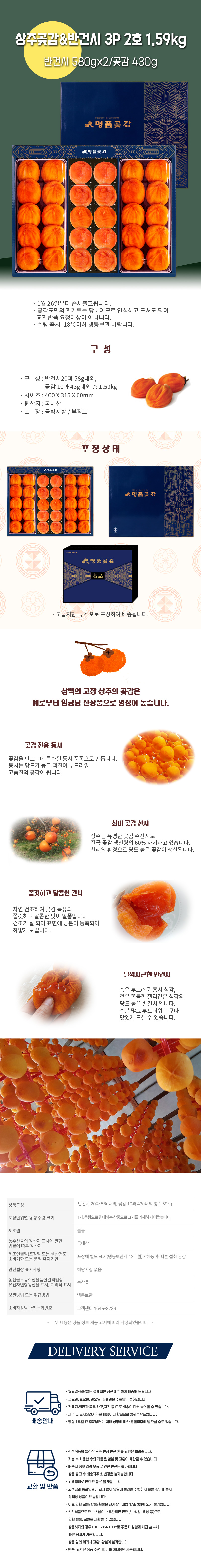 [업체별도배송] 늘봄 상주한시곶감&반건시 3P 2호 1.59kg