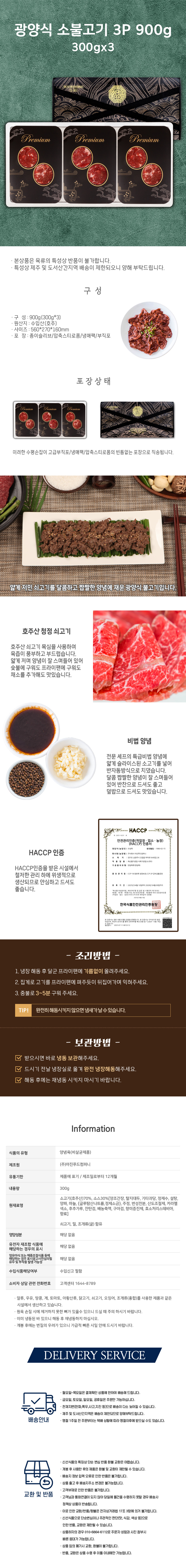 [업체별도배송] 아진푸드 광양식 소불고기 3P 900g