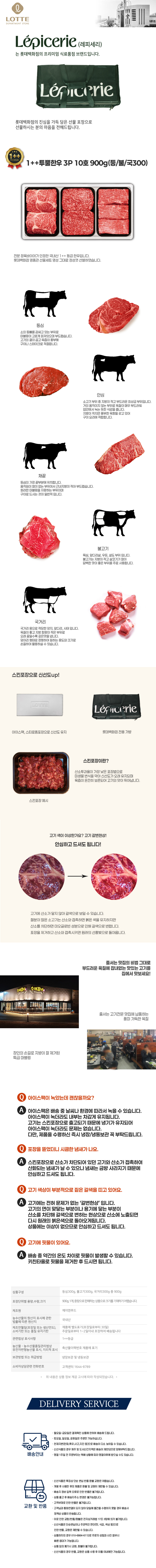 [업체별도배송] 더고기 롯데 1++투뿔한우 3P 10호 900g