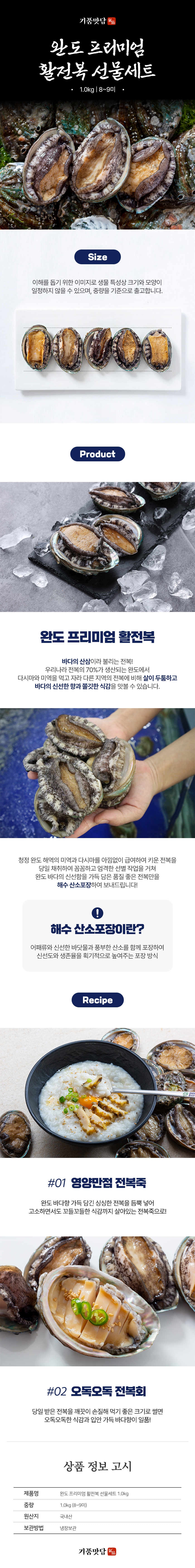 [업체별도배송] 기품맛담 완도 프리미엄 활전복 선물세트 1kg/8-9미
