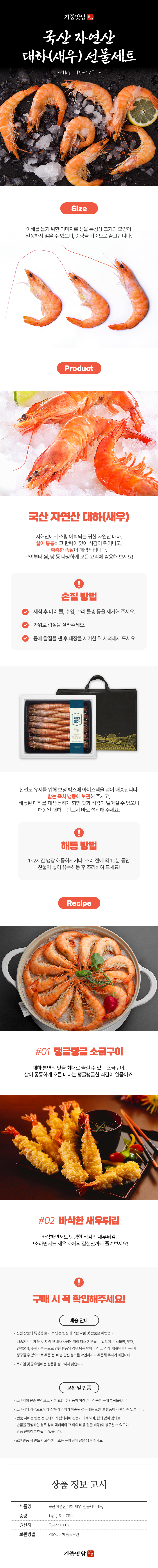 [업체별도배송] 기품맛담 국산 자연산 대하(새우)선물세트 1kg/15-17미