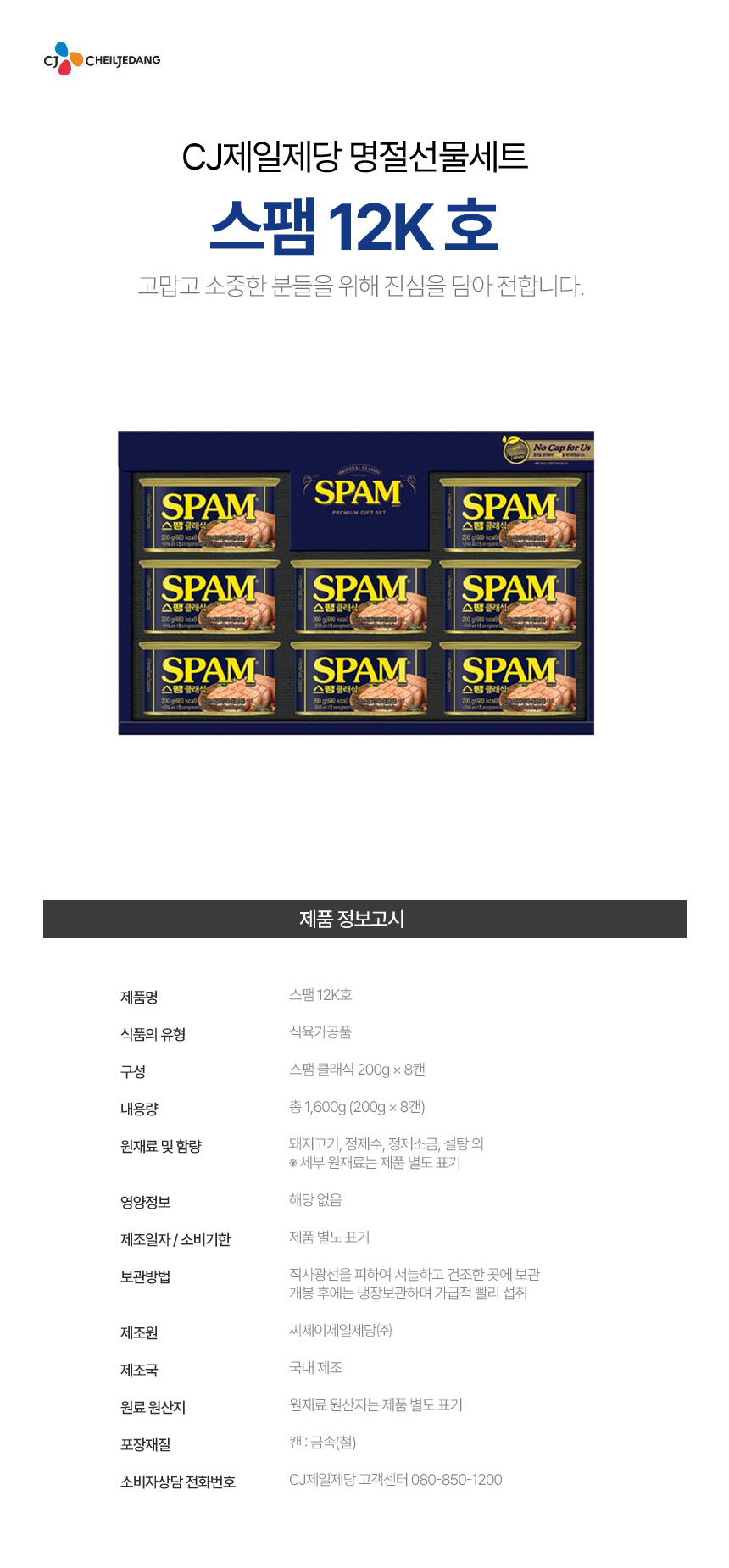 [업체별도배송] 스팸 12K호