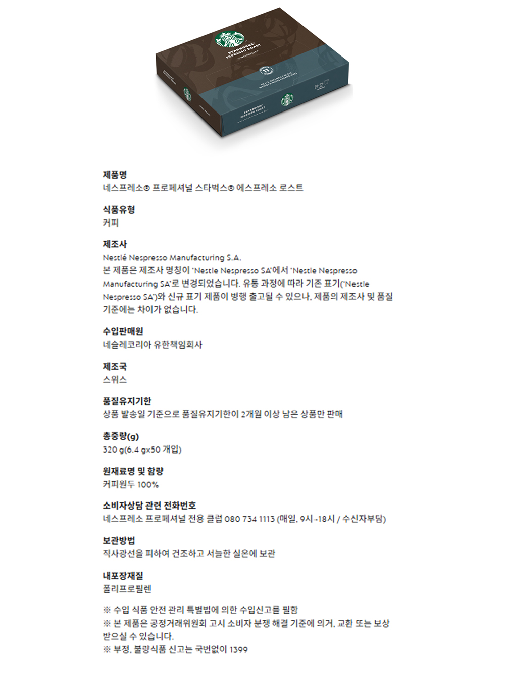 스타벅스 에스프레소 로스트(305g/50개입/네슬레)