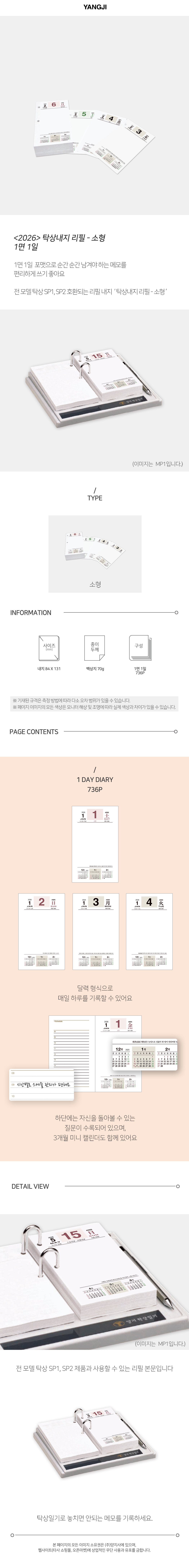 ■ 품명 및 모델명 : 2026년 다이어리(탁상내지-소형/D1107010226-001/양지사)
